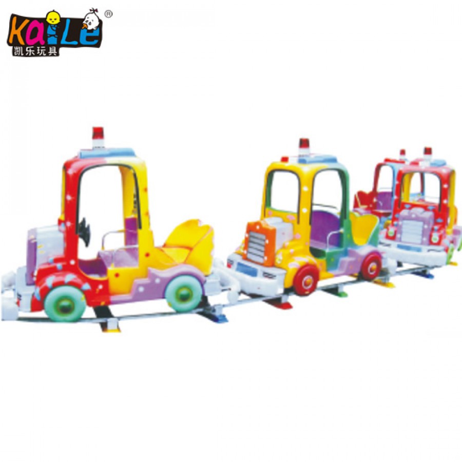 This is game center or amusement park vintage track train with carriages. The rails are fixed on ground. The rails can be ordered longer or shorter based on playground size. Standard is 50meters. The carriages are made of fiberglass.This machine is AC electric or battery operated.