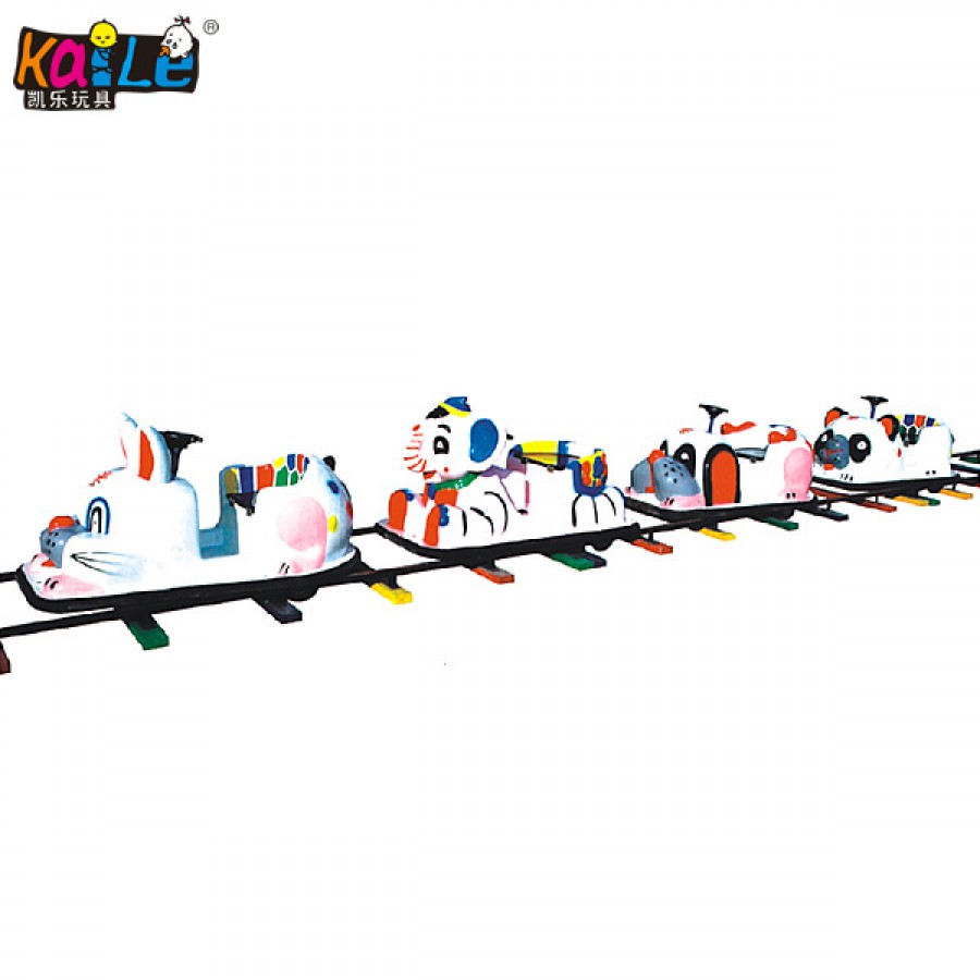 This is game center or amusement park vintage track train with carriages. The rails are fixed on ground. The rails can be ordered longer or shorter based on playground size. Standard is 50meters. The carriages are made of fiberglass.This machine is AC electric or battery operated.