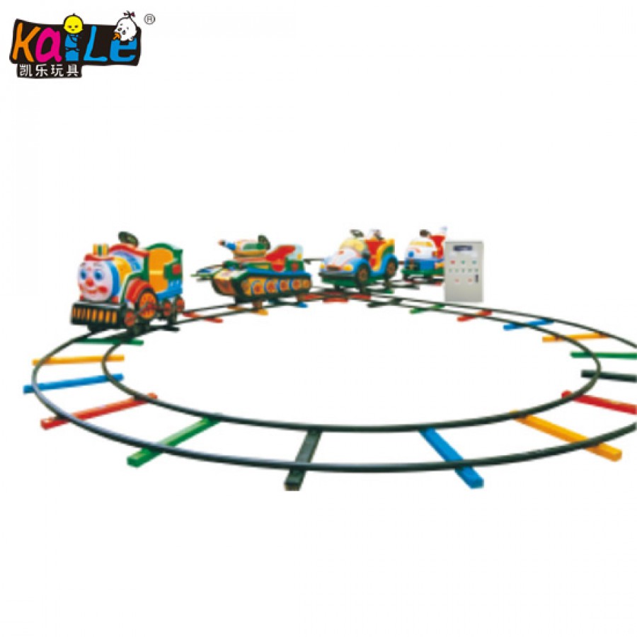 This is game center or amusement park vintage track train with carriages. The rails are fixed on ground. The rails can be ordered longer or shorter based on playground size. Standard is 50meters. The carriages are made of fiberglass.This machine is AC electric or battery operated.
